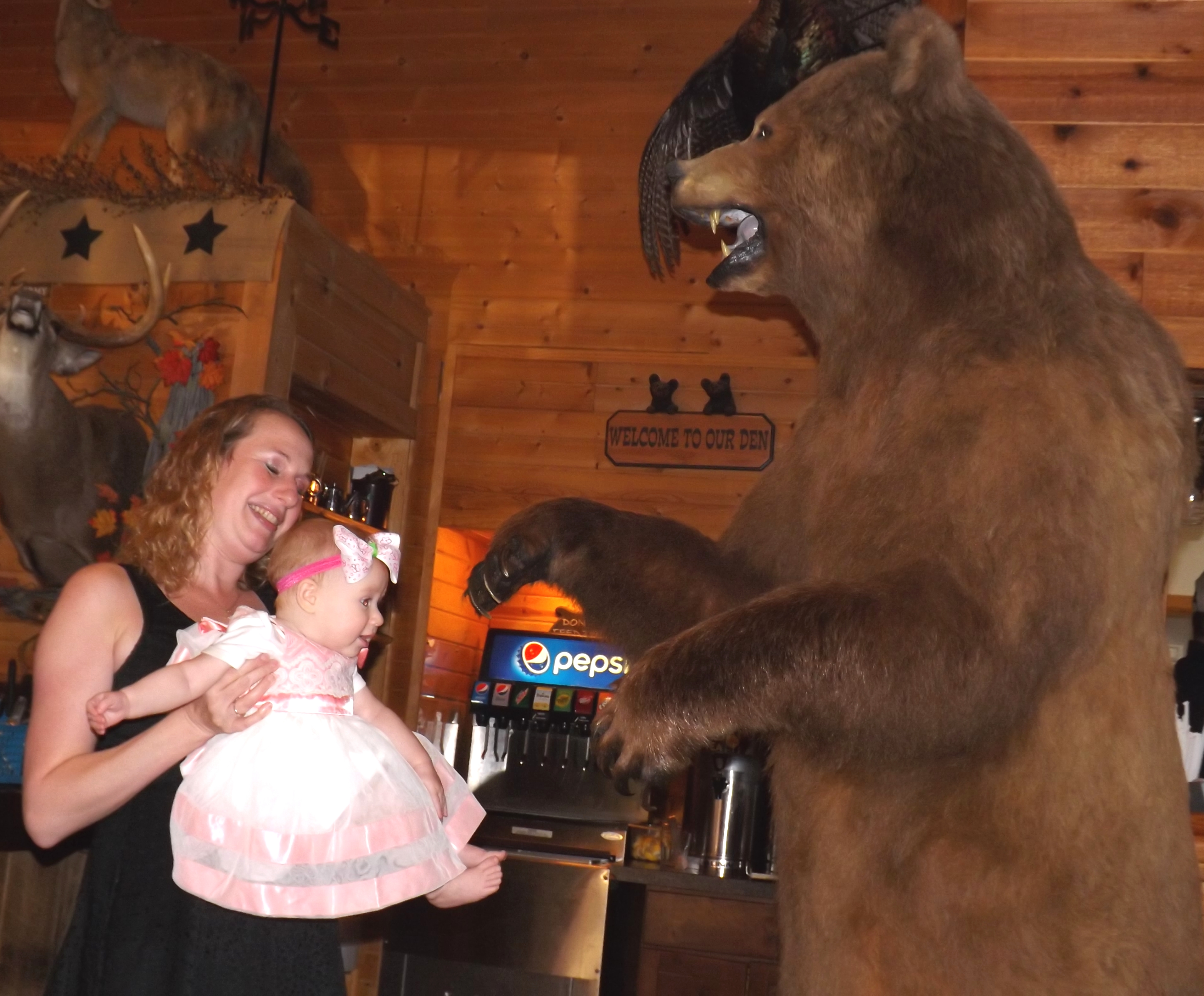 It’s time for an update on our book. But first, here is a message from our sponsor…marriage. This past week our daughter Elizabeth, and her husband Brad, celebrated their tenth anniversary. We helped them celebrate at an out of the way place near Cambridge, Ohio called the “Bear’s Den”. Our six month old grand baby, Adeline came along for the ride. She spent dinner trying her go-go gadget arms on everything within stretching distance on the table. She obviously thinks she is ready to sample everything. Unfortunately, her mom doesn’t agree.